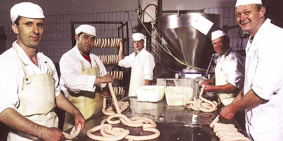 Auch wenn die Produktion mittlerweile durch hochwertige Maschinen auf neuestem technischen Stand unterstützt wird, das handwerkliche Wissen kann durch die Technik nicht ersetzt werden. Der für die Region typische Geschmack, der unsere Fleisch- und Wurstwaren zu etwas Besonderem macht, liegt im Wissen und Können unserer MitarbeiterInnen ... früher genauso wie heute ...